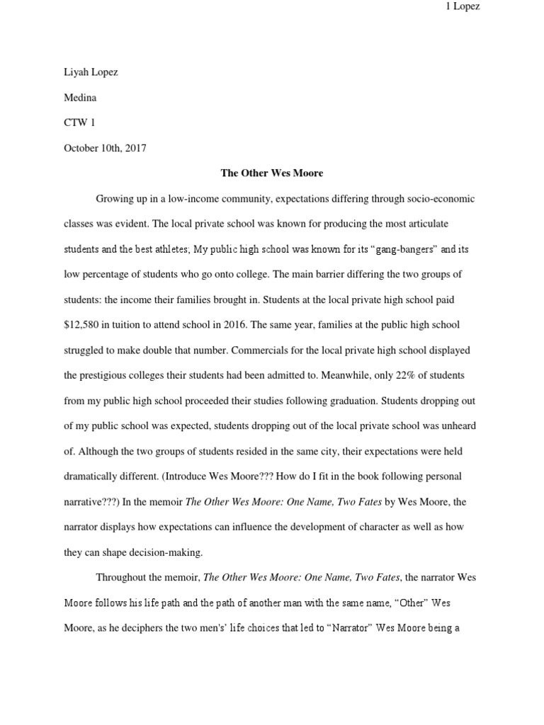 Other Wes Moore Essay 1st Draft Pdf Schools Science